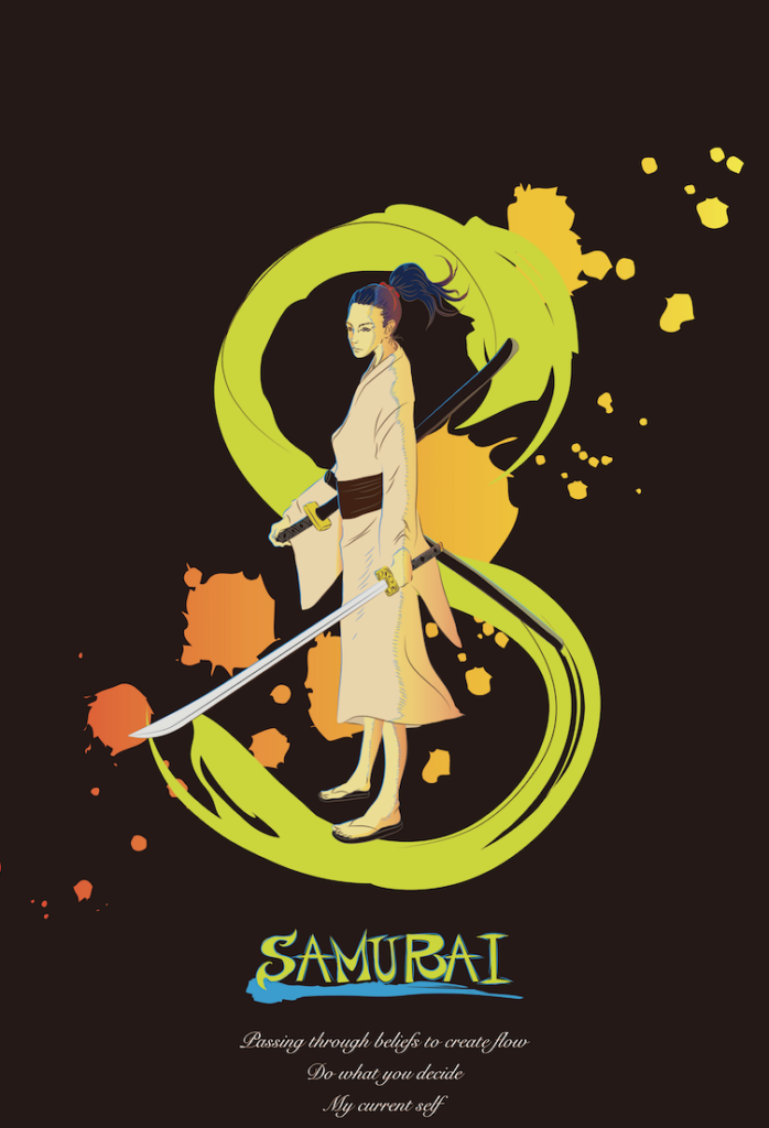 「サムライ」〜信念〜 2020年7月21日 takeshina イラスト サムライの信念をデザインにいたしました。〜信念〜・流れを作り出すには信念を通すこと・自分で決めることを通す・今の自分グッズとして販売もしております。
