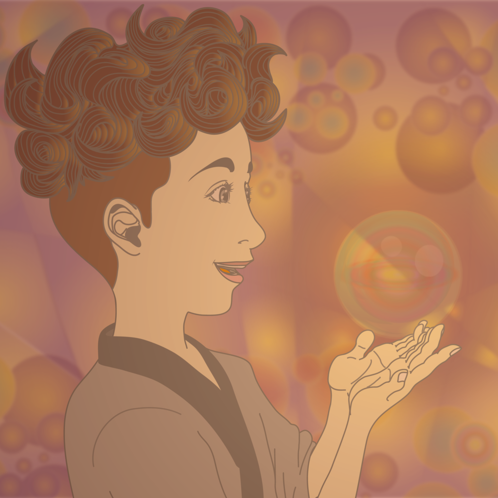 また、背景の色をカラフルにせず淡い色を使い同じような球体を配置する事で不思議な雰囲気を表現。
